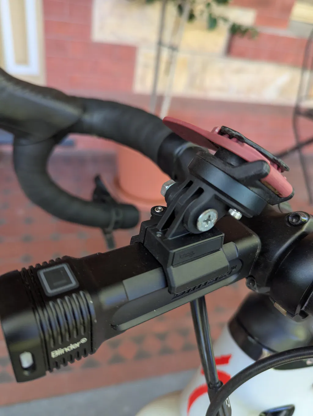 I bought this based on excellent reviews and because it came with a GoPro mount which enabled me to attach it to the underside of my Quadlock “out in front” mount. It’s very stable and streamlined front light.
